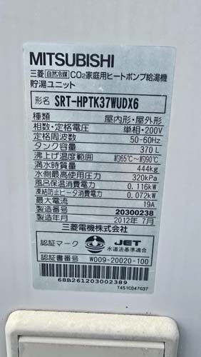 湯沢市表町 三菱電機自然冷媒CO2家庭用ヒートポンプ給湯機 貯湯ユニットSRT-HPTK37WUDX6→コロナ自然冷媒CO2家庭用ヒートポンプ給湯機 ヒートポンプユニットCHP-DZ601K、貯湯ユニットCTU-46AZ1K エコキュート交換工事